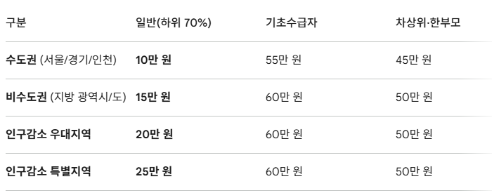 • 지방 인구감소지역 4인 가구: 최대 100만 원